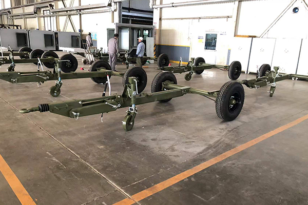 公司开发的单轴液压惯性制动拖车底盘已被批量列装